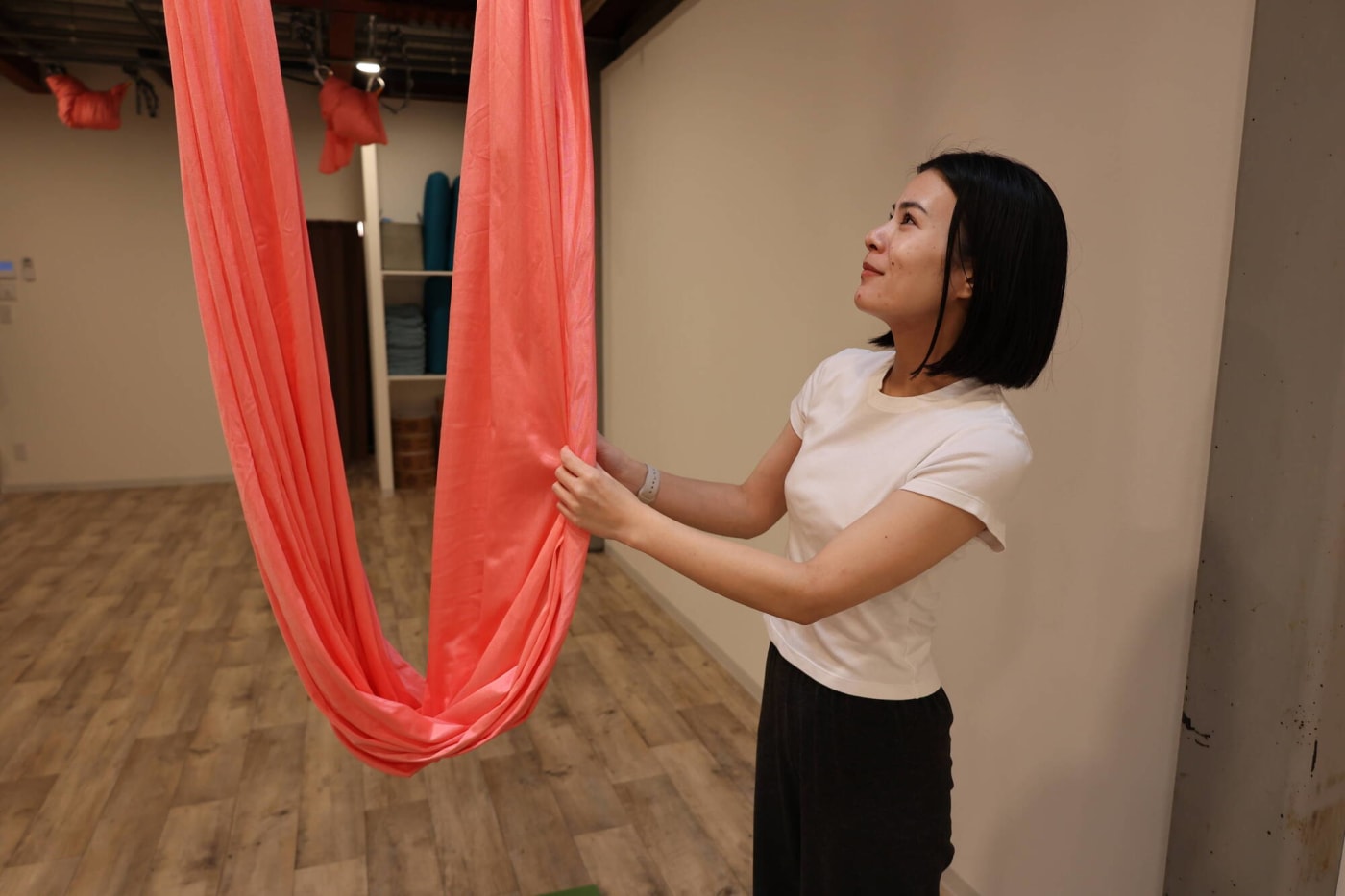 話題のエアフローヨガで使用するハンモックのような布