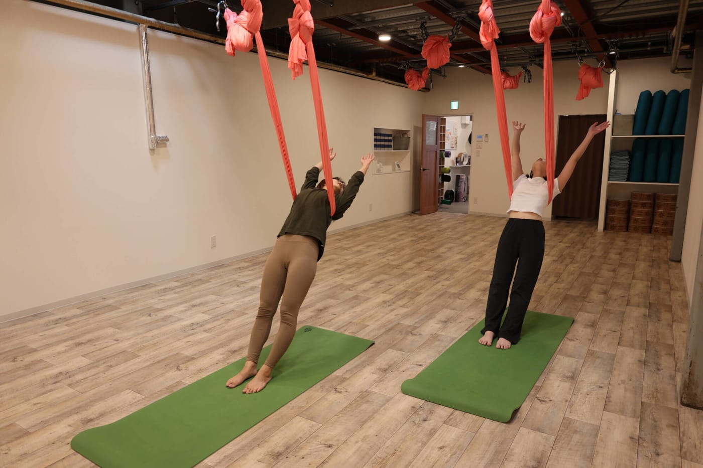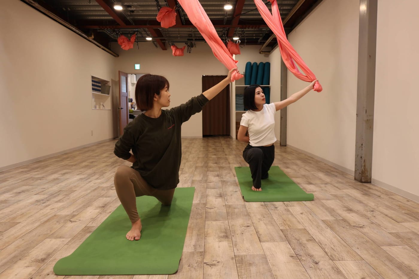 そこで今回は、エアフローヨガのレッスンを行っている「YARD yoga&pilates 元住吉スタジオ」のご協力の元、体験取材をさせていただきました!どんなレッスン内容なのか、初心者でもできるのか、気になるエアフローヨガの全貌をご紹介します。