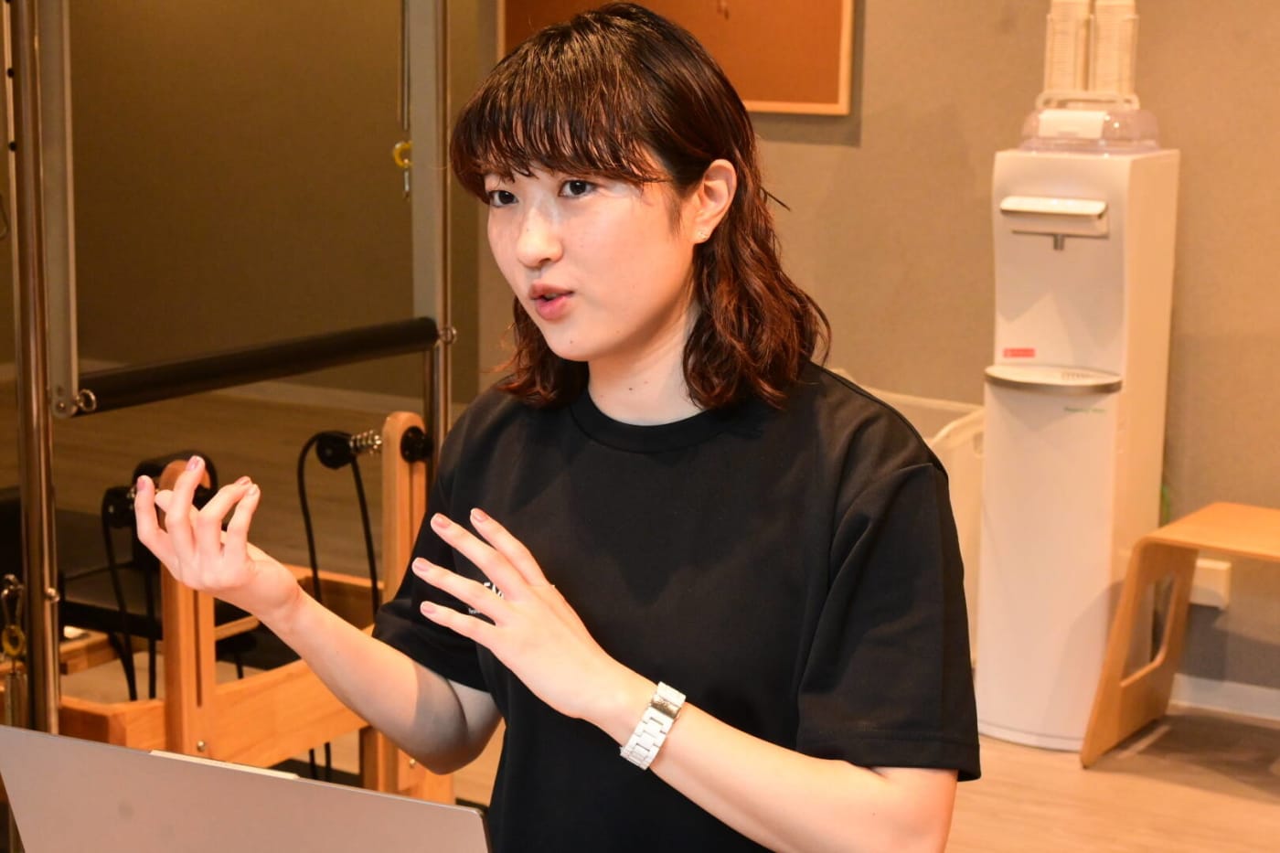 今回案内してくれたのは、小野美紗トレーナー。明るく朗らかな雰囲気で迎えてくださり、初めてのスタジオでも安心して過ごせました。