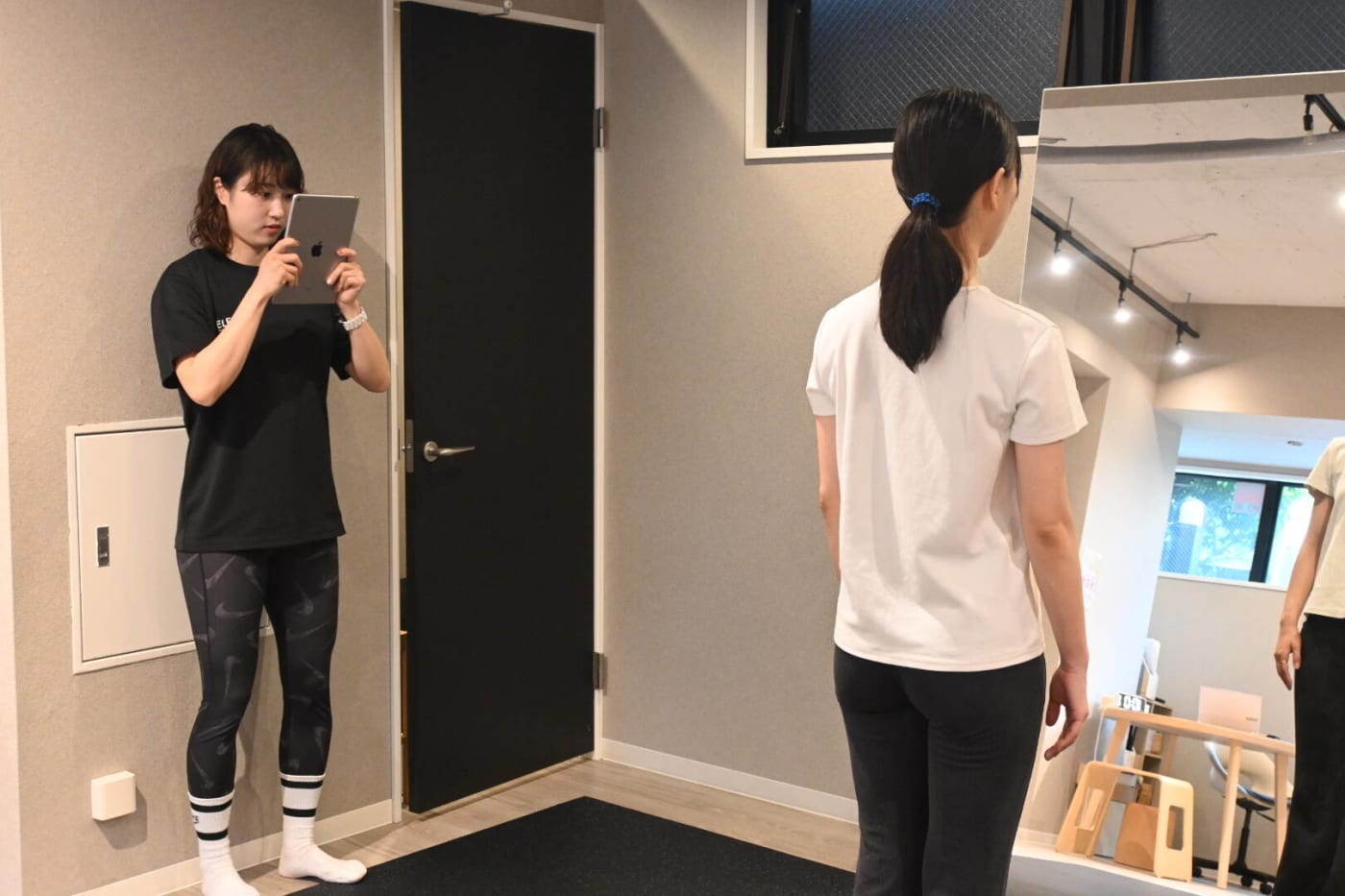 その後は、現在の姿勢を写真でチェック。正面・横・後ろからの写真を撮影し、立ち姿勢や骨盤・肩の位置などを細かく確認していきます。