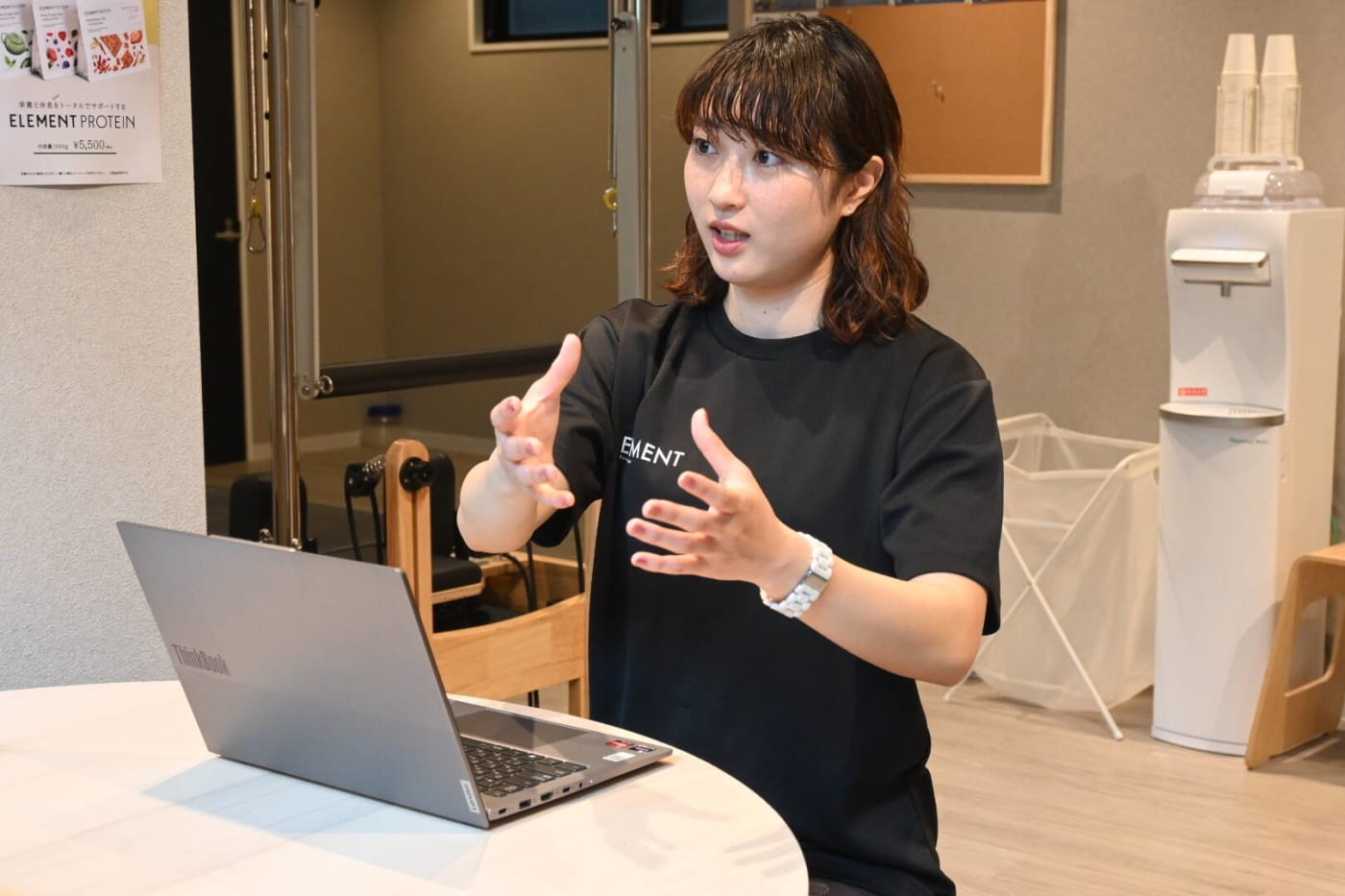 体験レッスンを終え、小野トレーナーにELEMENTならではの魅力やサービスのこだわりについてじっくりお話を伺いました。パーソナル×マシンピラティス×30分の魅力とは?