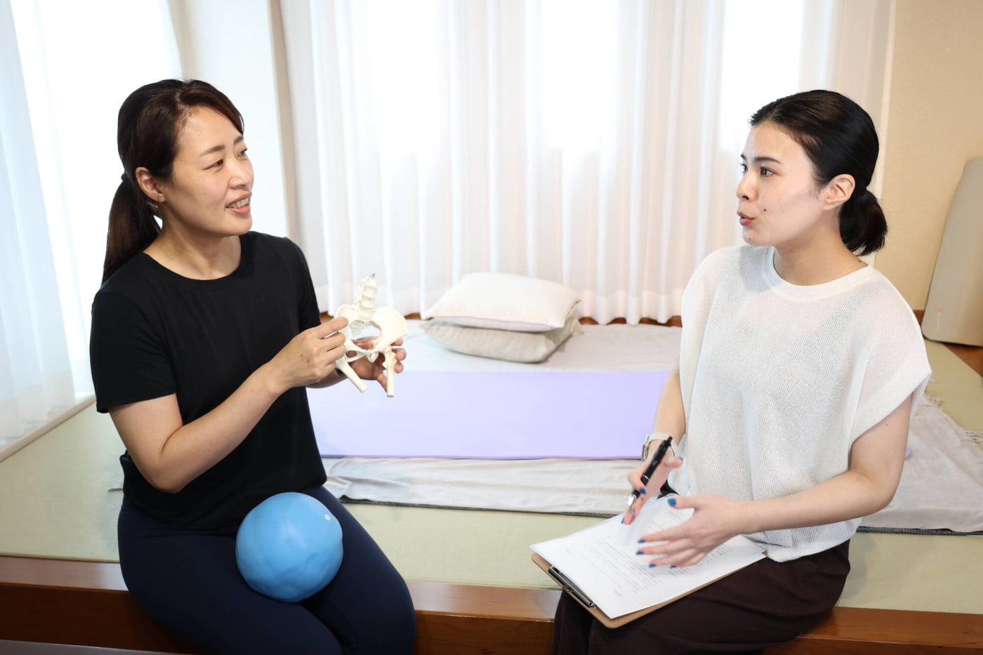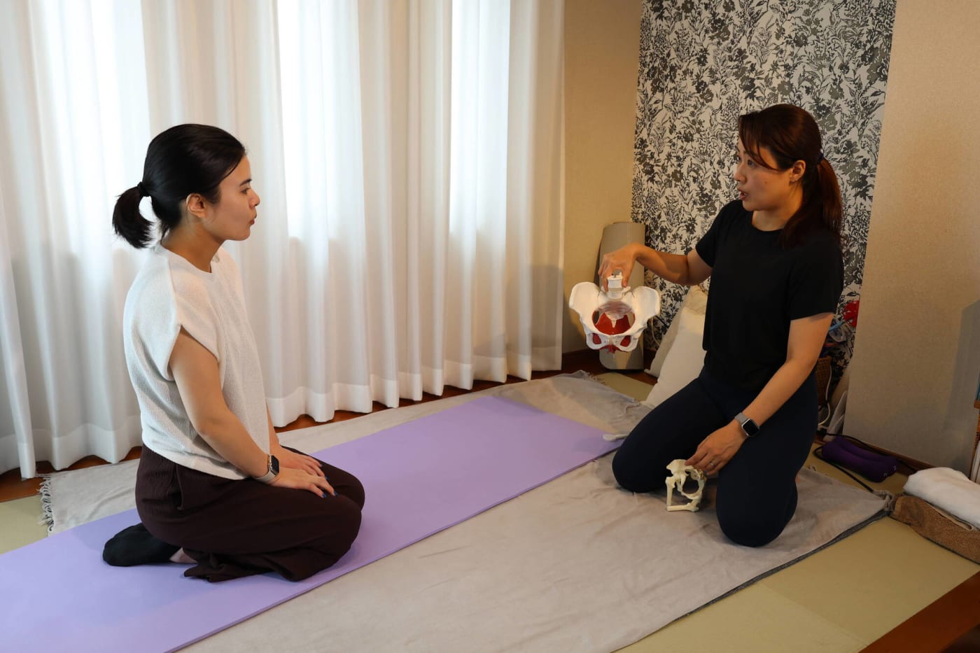 40〜50代の方が多い印象ですが、産後の30代の方にもとてもおすすめです。産後2ヶ月ほどでレッスンが受けられるので、早くケアを始めたい方にも向いています。ただ、産後の開始時期は出産時の主治医にご確認いただき、無理せずご自分のペースで行っていただければ大丈夫です。