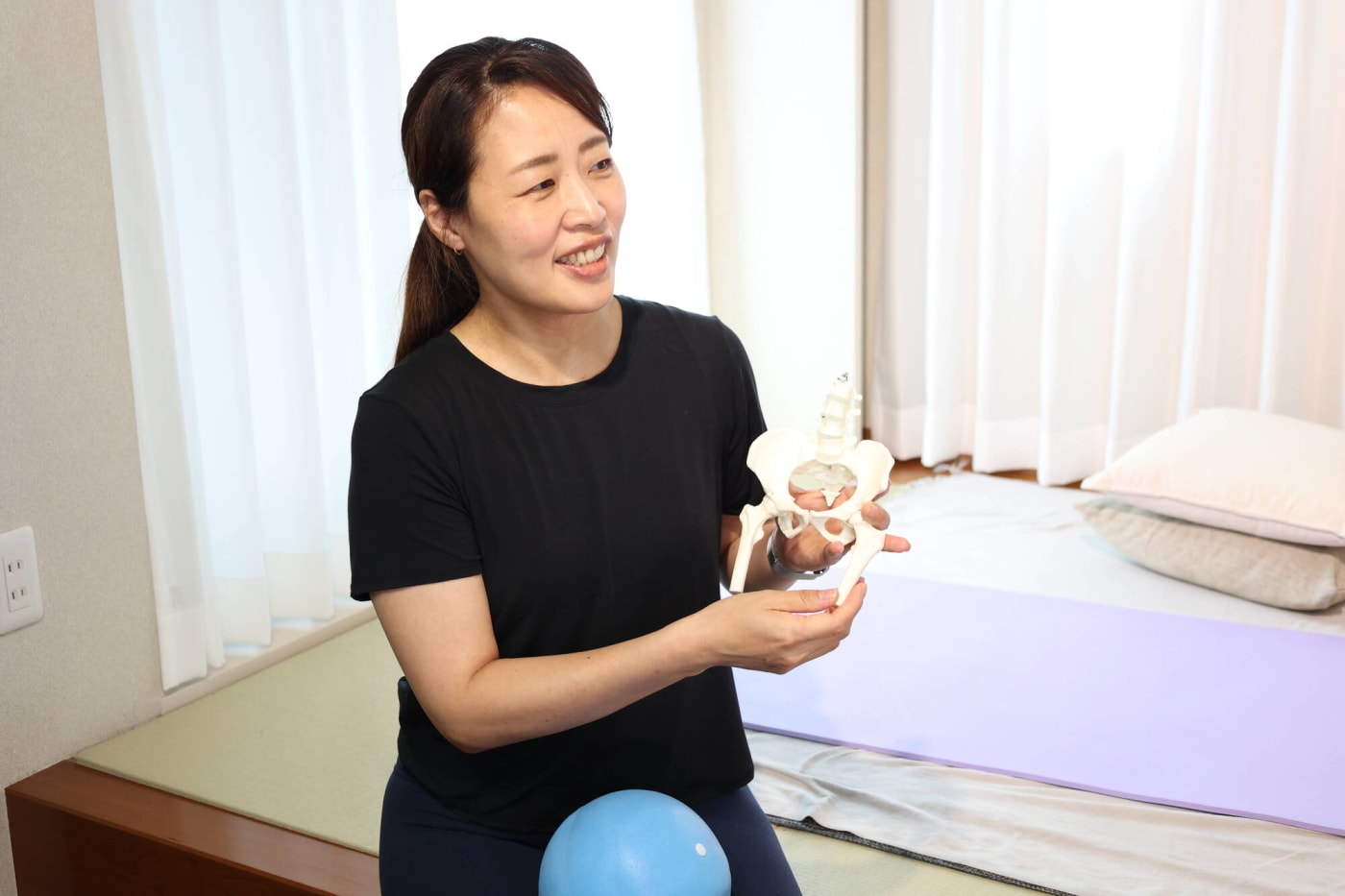 この日は骨盤の模型を使った説明も。動きを視覚的に確認できるのは、初心者にとって心強いポイントです。