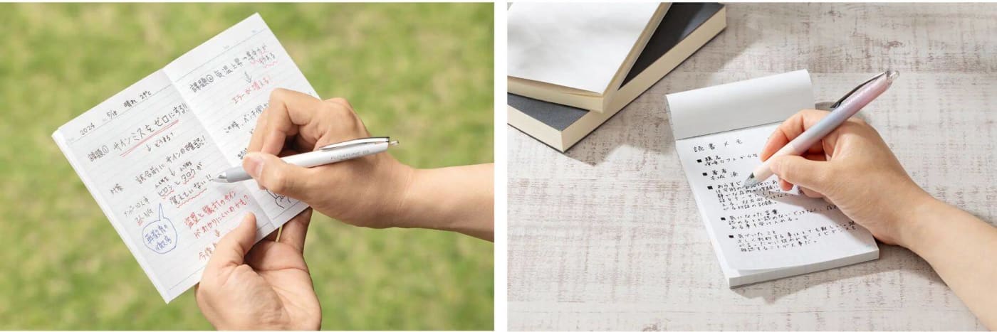 「フローチューン」は、まるでペン先が紙の上をすべるような、摩擦レスのなめらかな書き心地を実現したボールペン。手帳やノートはもちろん、ビジネスシーンなど、様々な場面で使えます。