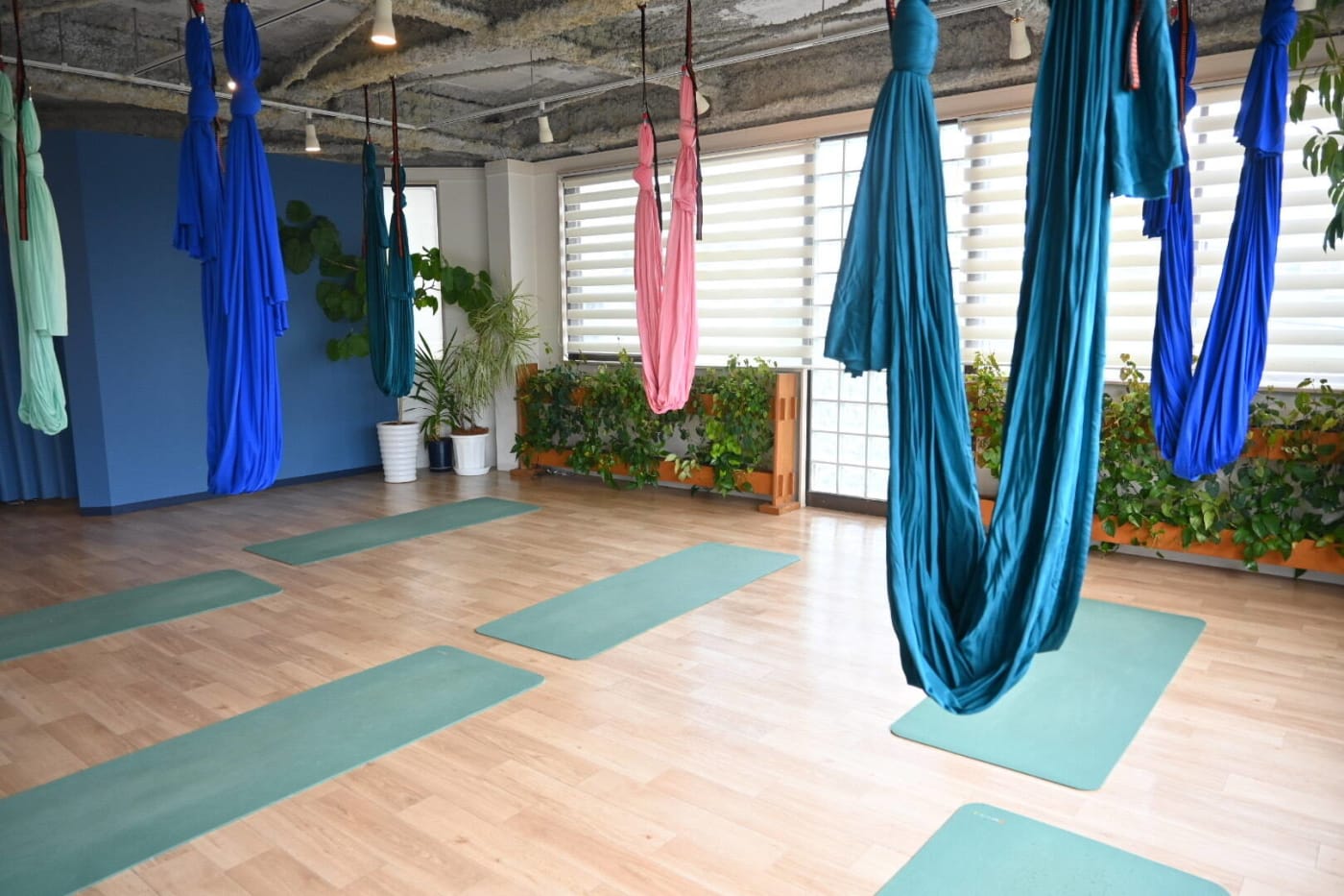 レッスンは4種類で、エアリアルヨガをはじめ、ヨガやピラティス、フィットネス系のクラスまで幅広く展開。