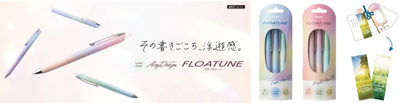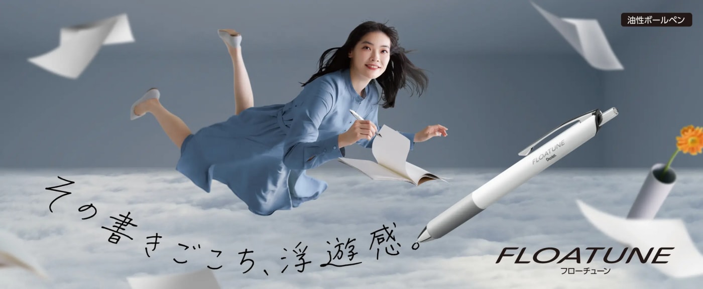 今回使用した「フローチューン」は、ぺんてる株式会社が7年の歳月をかけて開発した、浮遊感のある書きごこちを追求したボールペンです。