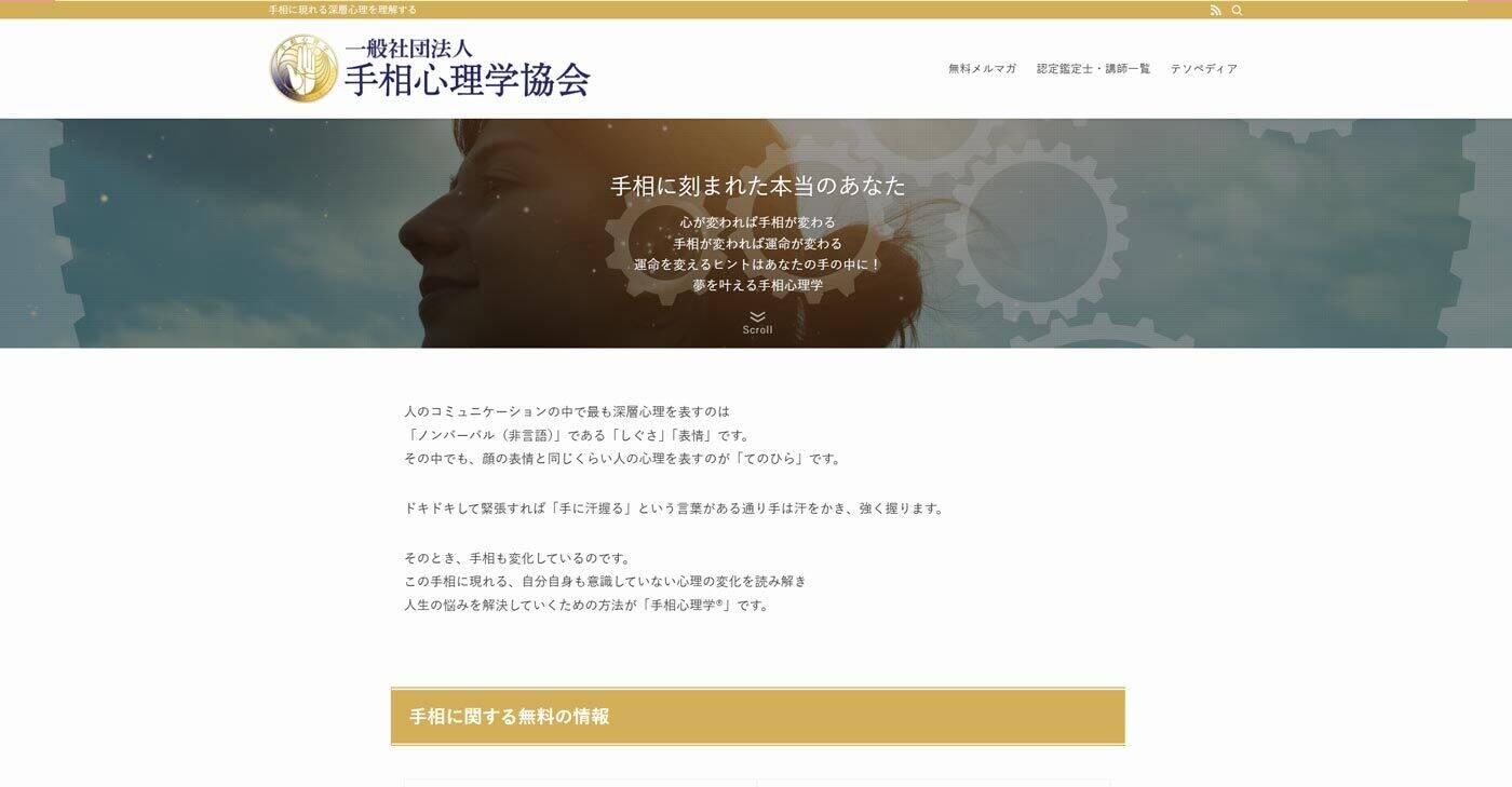 | 公式サイト | 一般社団法人手相心理学協会公式サイト |